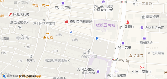 展开合肥市庐江县庐城镇中心城38栋东侧二楼(中心城广场西侧)